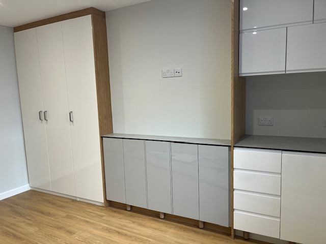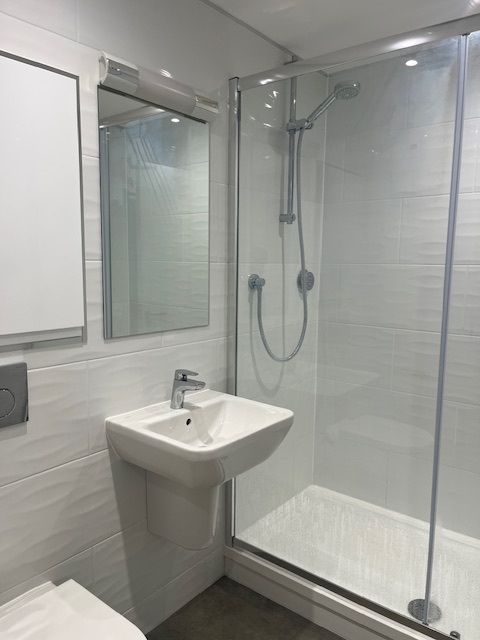This newly refurbished studio and own entrance ,bedsitting room with fitted cupboards and drawers , fully fitted kitchen and large shower room .Balcony .