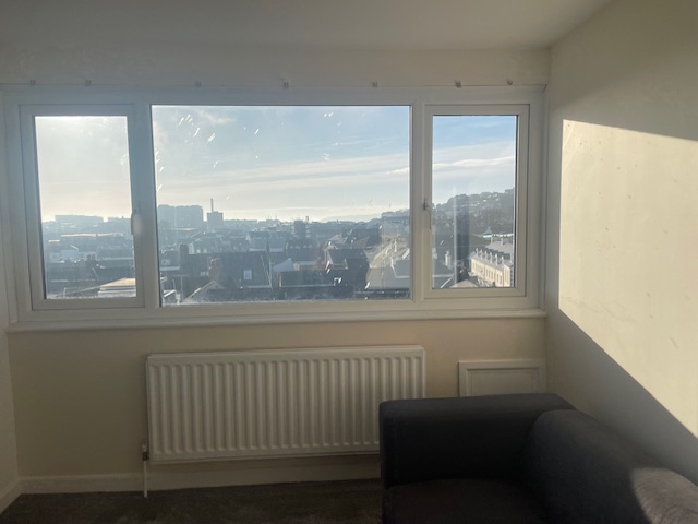 This top floor fat comprises own stairs and entrance hall Double bedroom Shower room kitchen and sunny lounge with views over St Helier